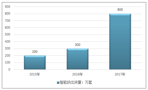 2015年~2017年中國智能鎖出貨量